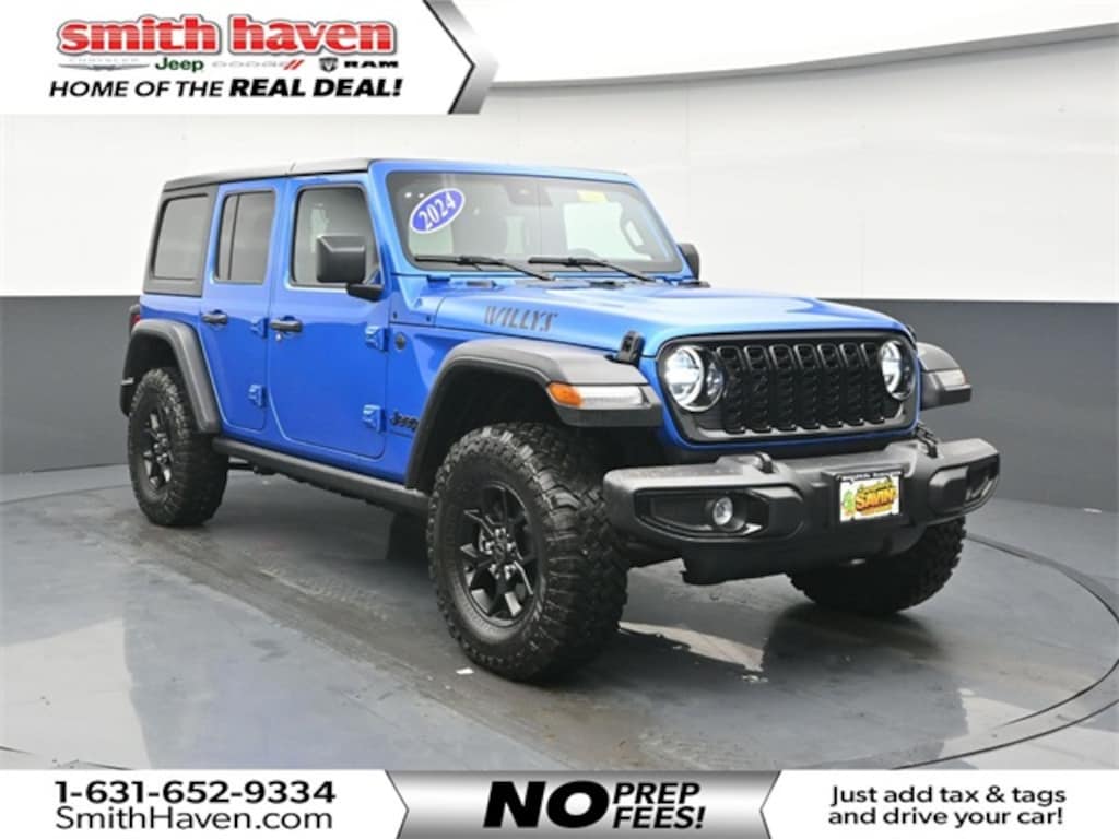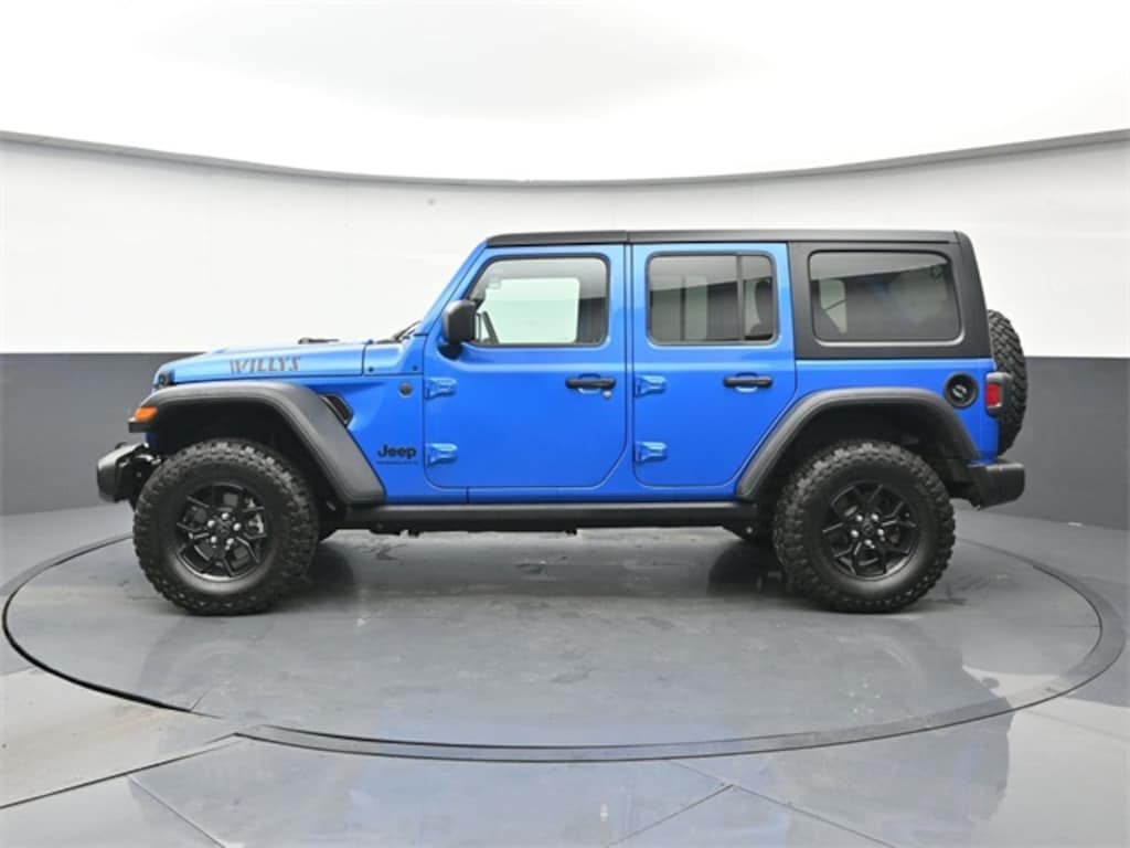 Clean CARFAX. Hydro Blue Pearl Coat 2024 Jeep Wrangler Willys 4WD 8-Speed Automatic 3.6L V6 24V VVT